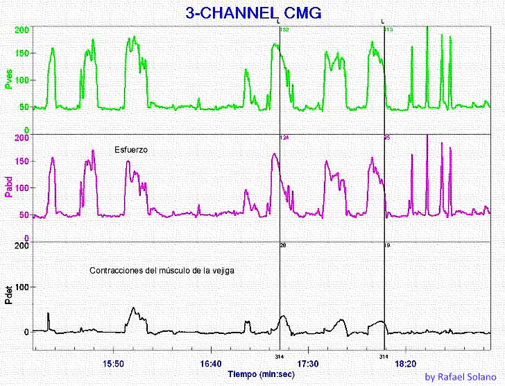 Ésta patología se puede presentar hasta en el 40% de las mujeres y afecta gravemente la calidad de vida. La causa no se conoce con certeza, sin embargo se sabe que existen contracciones involuntarias por parte del músculo de la vejiga las cuales pueden ocurrir espontáneamente o ser provocadas por algún esfuerzo, como se muestra en la imagen, la cual fue obtenida al realizar un estudio denominado: “Estudio urodinámico multicanal”